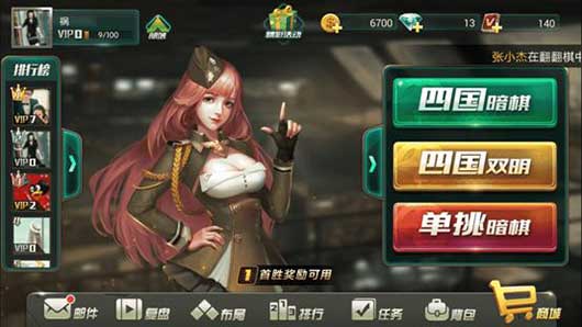 天天军棋包括四种玩法:四国暗棋,四国双明,单挑暗棋,翻翻棋
