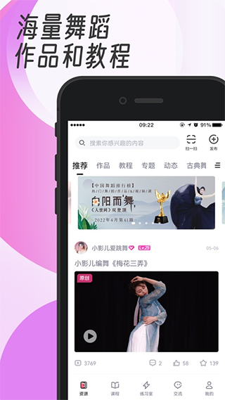 2、海量免费舞蹈视频课、原创作品任你学、反复练;舞蹈明星名师精品付费舞蹈课程有评价、有保障、放心购;