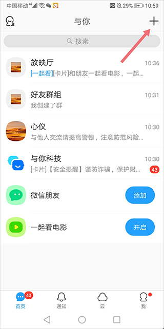 1、首先在苹果手机上打开并登录与你app,进入首页中点击右上角的“+”号