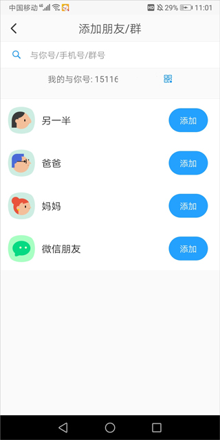 3、接着输入对方的“与你号”/“手机号”即可加好友