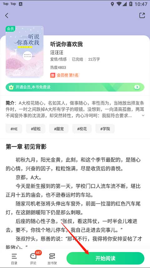 2、点击开始阅读进入到书籍当中