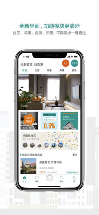 4、根据手机定位,自动搜索周边房源及邻里,不管是浏览房源,还是找到合意的“邻里”,只需一键,轻松搞定。