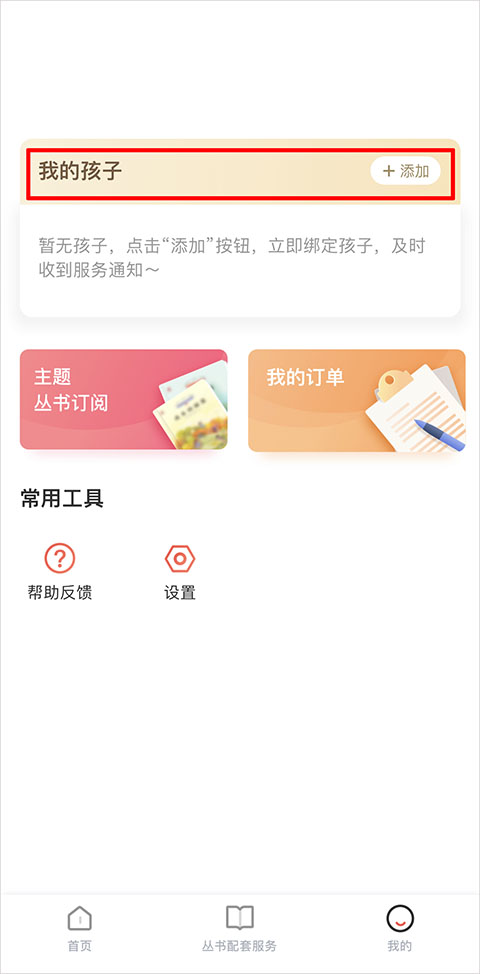 1、首先进入一米阅读ios家长版,在我的孩子处点击添加