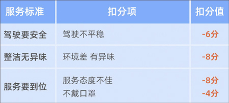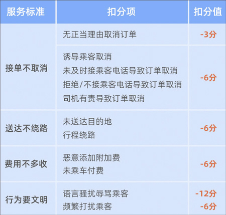 2、主观类行为,每满3次会扣分:通过乘客评价、投诉等反馈,累计发生3次才会扣分,不支持申诉。
