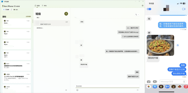不过正因如此,该功能目前无法查看 iMessage 群组消息,不能正常展示图片,也不能同步过往消息记录;当你在手机上打开了信息页面(无通知)时,消息也不会出现在 PC 端。
