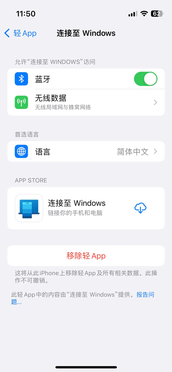 这也是 Phone Link 会限制 iOS 14 为最低版本的原因。微软试图让自己的连接同步功能体验像原生的连续互通一样无感。而且 iOS 端的应用目前本身也没有更多功能,采用轻 App 已能满足要求。虽然没有独立的 app 图标,你仍然可以在设置中找到并更改它的权限设置。