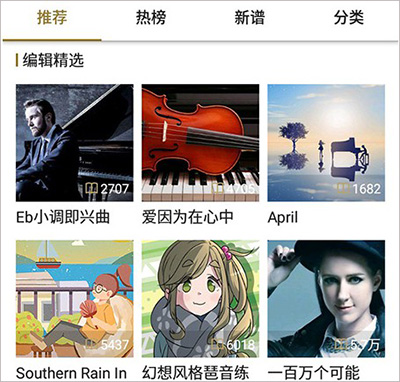 1、打开软件,通过各种分类找到自己感兴趣的钢琴曲;
