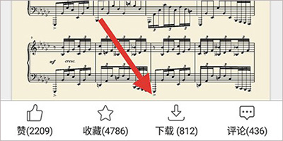2、点击进入钢琴曲的详细曲谱界面,在当前页面那底部找到下载选项,点击即可下载;