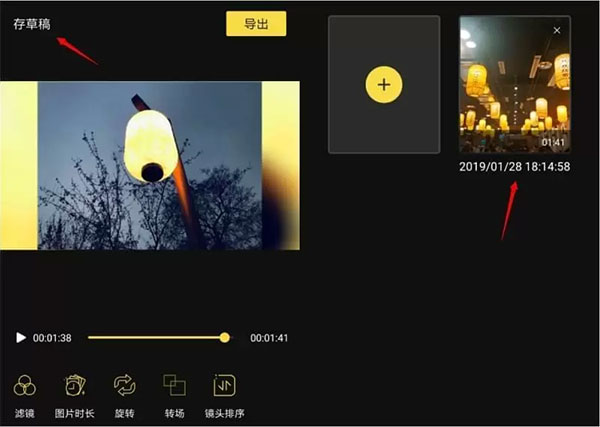 为了方便我们进行二次编辑,蜜蜂剪辑也提供了存草稿功能,在编辑界面点击左上角的“存草稿”后即可保存当前的编辑操作,下次打开后可以直接再次编辑。