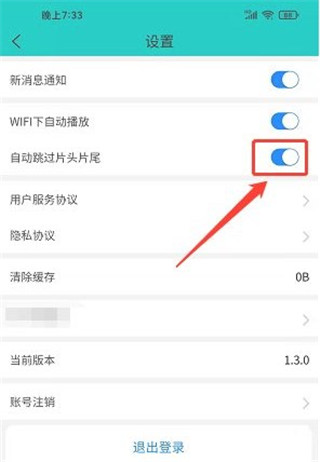 3、进入设置界面,点击【自动跳过片头片尾】右侧按钮开启。