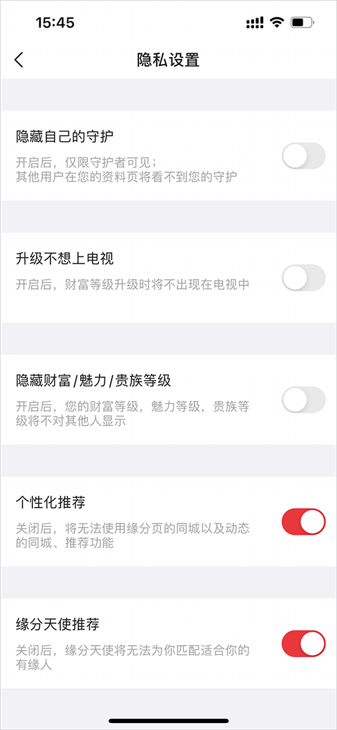 4、这样自己在发布动态或者和别人聊天的时候就不会显示自己的当前位置信息,在这些隐私设置功能当中就能够看到隐藏位置的功能,点击开启即可,保证你的信息安全。
