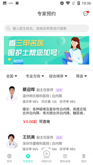 【专家加号】专家加号,线上预约,眼科专家遍布全国各地,随时为您“加号”。