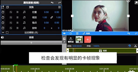 3、接着我们可以点击播放按钮,进行测试,这时候就会发现视频出现卡顿现象。
