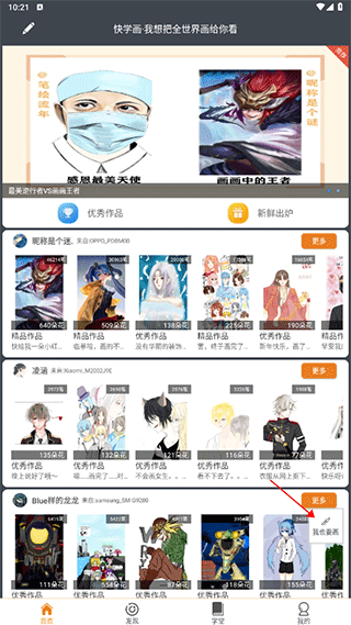 快画画吧苹果版是一款手机绘画学习软件,一般又称快学画画吧,这款软件拥有无年龄限制的全民原创绘画教学服务,并且还有精准的画画学习分类,让用户们爱上画画。软件支持用户们在线涂色模拟真实画画,以及精准画画分类,并且用户们还能够选择一键分享自己的作品,拥有更多的粉丝。