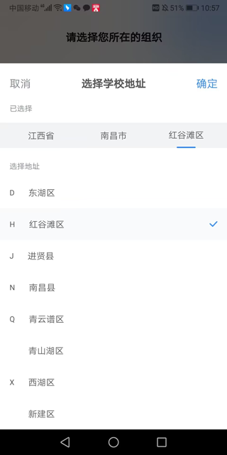 用户首先打开应用需要根据手机定位或手动选择之前在一起作业app、一起中学app的老师或学生端上注册时所在的地理位置