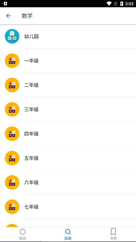 3、比如选择数学栏,按照自己的年级来选择。