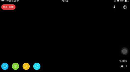 左下角按钮依次为弹幕开关、礼物开关、美颜开关、分享