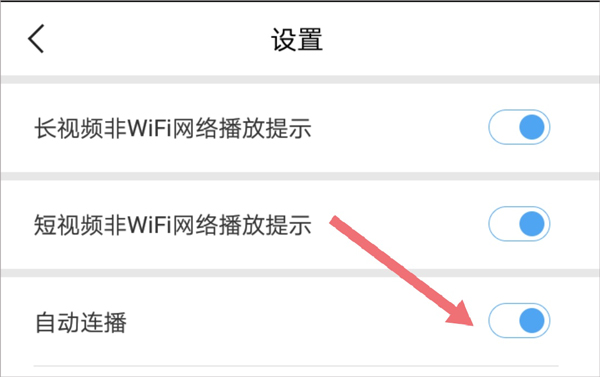 用户只需前往【我的】页面中点击 【设置】,在打开的设置页面中开启【自动连播】功能即可