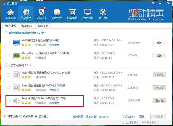 2、重启电脑,打开驱动精灵后安装。