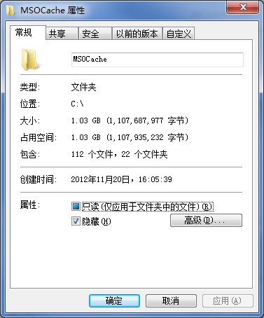 该目录为windows Offices安装源目录。主要目的是为便于日后在OFFICE中添加组件,如果日后不再修改OFFICE或有安装盘的话,可以将该目录清除。可以为C盘清理出1G左右的空间。(注:如果C盘目录中没有,MSOCache目录为OFFICE安装的分区根目录)