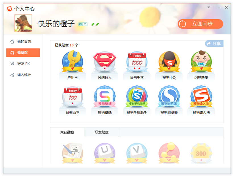 日常输入或安装推荐的软件均可以获得各类勋章。您可以在个人中心的勋章馆中查看已获得及尚未获得的勋章。