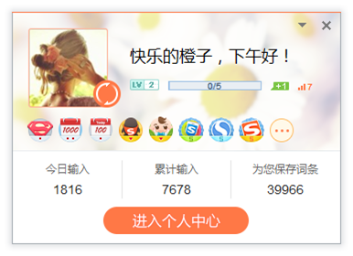 登录搜狗输入法个人中心,可将您的输入法词库及个性化配置随时保存。同时,您也可以在个人中心内进行账户信息管理,查看自己或好友的等级, 浏览获得的勋章数目,查看历史输入字数等统计信息等。