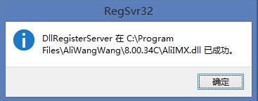 2、在弹出的黑色框中输入 regsvr32命令,然后空格(注意空格不是回车),在把AliIMX.dll拖入黑色框中,AliIMX.dll在阿里旺旺的安装目录下:C:\Program Files\AliWangWang\8.00.34C\AliIMX.dll。然后回车,注册成功后,会生成 wangwangX class对话框。内容是: regsvr32 "C:\Program Files\AliWangWang\8.00.34C\AliIMX.dll" 注册成功,然后回车。
