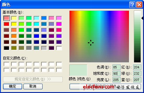 另外,ARGB(255, ??, ??, ??) 后面的??指的是RGB颜色哦,不是(“色调”85,“饱和度”90,“亮度”205),而是其对应的(红 204,绿 232,蓝 207)