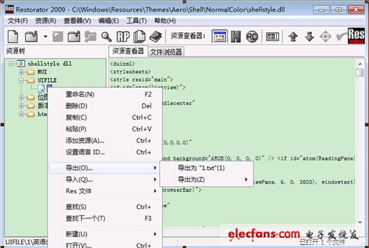 2、用 Restorator打开C:\Windows\Resources\Themes\Aero\Shell\NormalColor目录下的shellstyle.dll文件