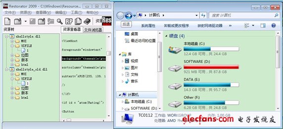 这种设置后有的人说资源管理器上还不是绿色的,下面可以通Restorator软件还进行操作,方法如下。