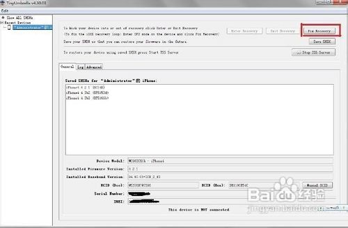 成以上步骤后,便会发现小雨伞备份的Fix Recovery可以点击了(不按照以上步骤做进入了DFU也不可以点击)点击Fix Recovery。