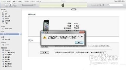 首先把iphone4进入DFU模式,iTunes会弹出恢復固件界面。
