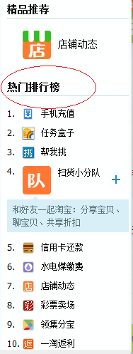 6、最右侧则是应用的“热门排行榜”,一般是用户欢迎和常用的应用,排行榜上面则是应用“精品推荐”,未添加的应用也可以添加,已添加的也可以打开