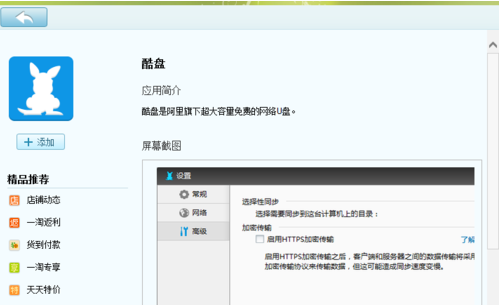 4、如下图,直接点击图标会跳转到应用介绍窗口,查看应用介绍。未添加的应用可以把鼠标指针停在图标上面,再点击出现的“添加”按钮,