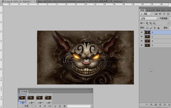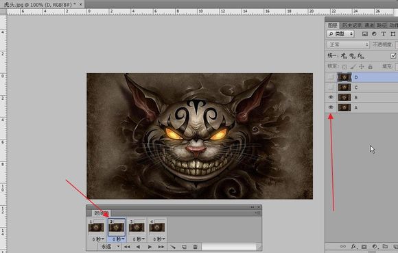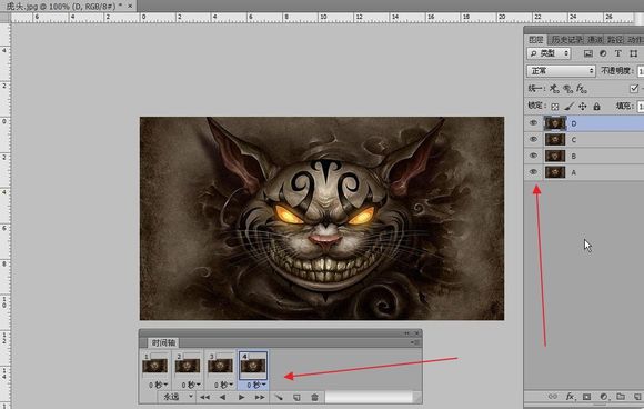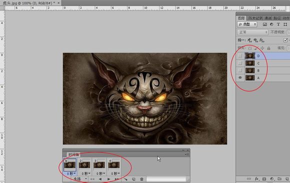 给四个图层命名ABCD这样就好区分了,原谅我用这么土的图层名字