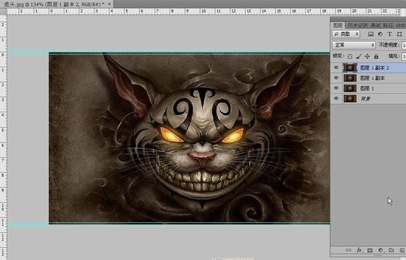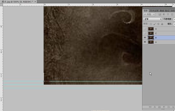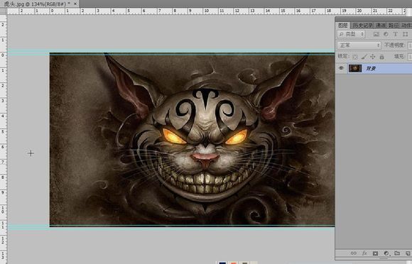 第二步:把图片上下都弄上参考线,这样会让接下来的操作更方便