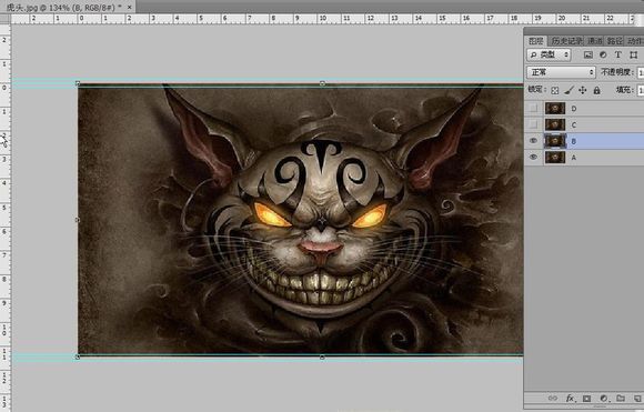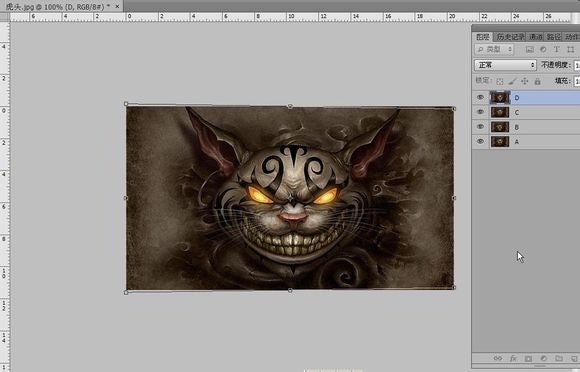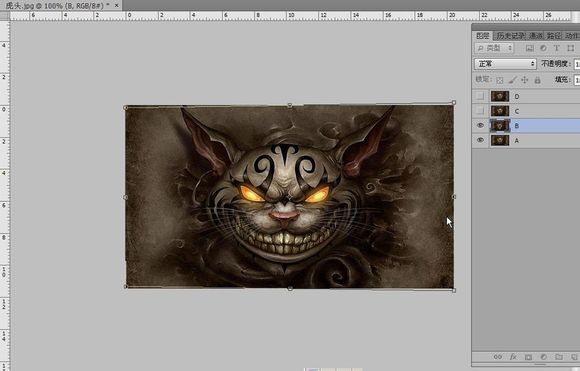 先把C、D的图层小眼睛戳瞎,我们编辑图层B。。按ctrl+t变形