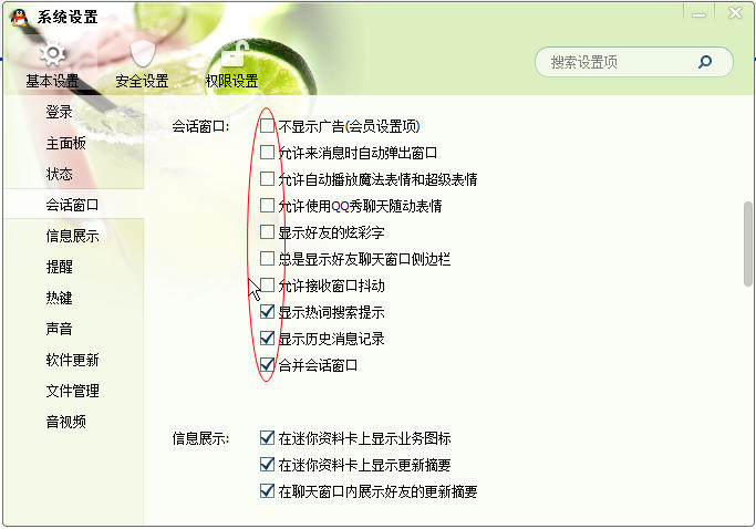 3、把什么QQ秀啊,魔法表情啊,什么的都选择不允许吧。
