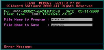 更新主机板BIOS的第一步,下载对应主机板型号的BIOS文件(xxxx.BIN)保存到你的硬盘或可引导的U盘上,并且同时将此文件与AWDFLASH.EXE文件放在一个目录下。重启电脑,通过U盘引导进入纯DOS环境,输入以下命令并[回车]运行:C:/AWDFLASH 。你将跟随此程序进入如下图的执行菜单。