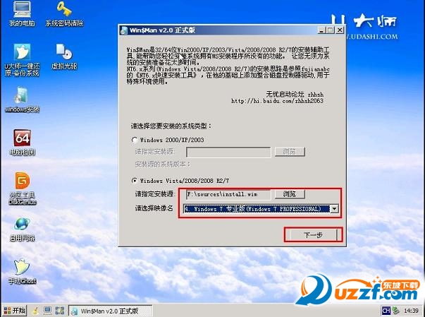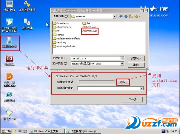 2.将镜像文件加载成虚拟磁盘后,利用“windows通用安装器”找到刚才的install.wim文件进行安装