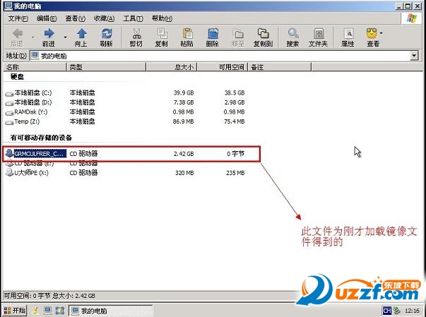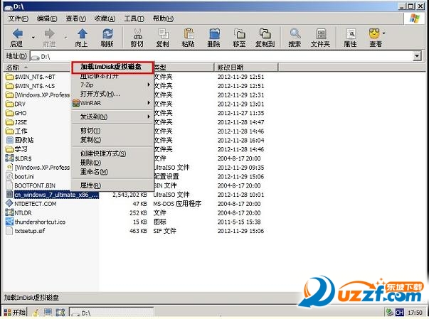 3.进入WINPE后,找到刚才准备好的原版WIN7镜像文件,利用ImDisk将其加载成虚拟磁盘,如图: