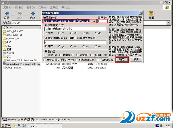4.请记住加载后的虚拟磁盘盘符,这里为F,之后点击确定按钮