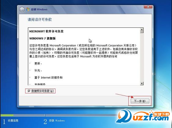 5.勾选“我接受许可条款”,单击“下一步”按钮