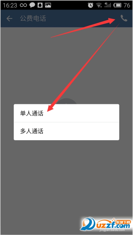 2、进入后点击右上角电话标志,然后选择单人或多人通话。