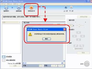 使用随机软件Easy Photo Print(软件版本为1.10)打印照片,当选择“布局与打印”后,无法打开版面菜单,软件提示“没有同所选打印机与纸张类型的组合兼容的布局”,无法完成打印,如图(1)。