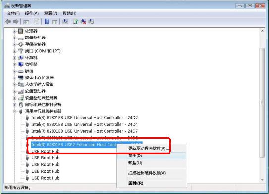 方法一:在“设备管理器”中禁用USB2.0设备。