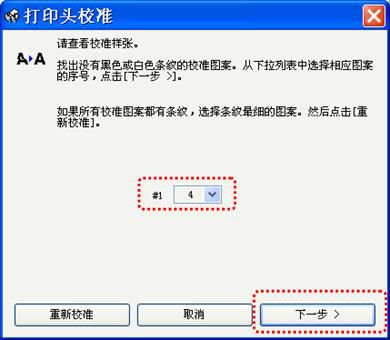2.如果校准样张中的色块都有白色竖纹,则选择竖纹最细的色块,然后选择“重新校准”;
