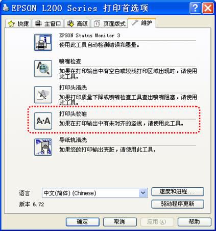 方法二:通过打印机驱动中提供的“打印头校准”工具进行校准,具体操作如下:
