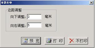 2. 金税软件中发票打印时,会跳出一个调整对话框, “向下调整”更改为“2”毫米,“向右调整”更改为“5”毫米,见图(4)。按此方法调整后,打印正常,见图(2)。 。