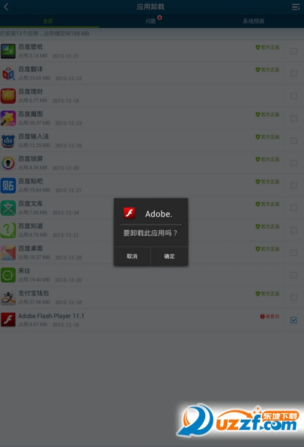 选择了卸载的软件后,点击下面的批量卸载按钮,之后会弹出如下图所示的对话框,在弹出的对话框中点击确定